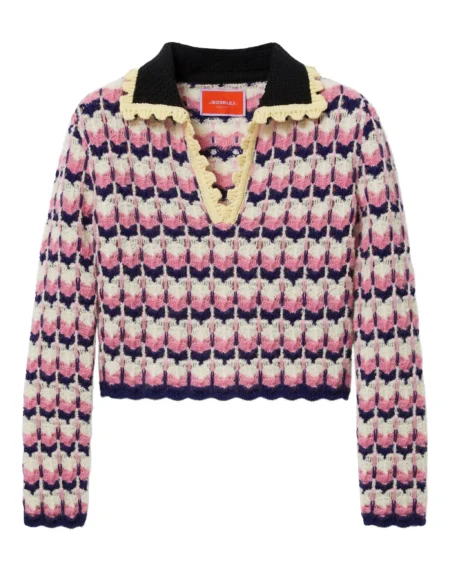 La DoubleJ crochet-trimmed geometric-pattern sweater