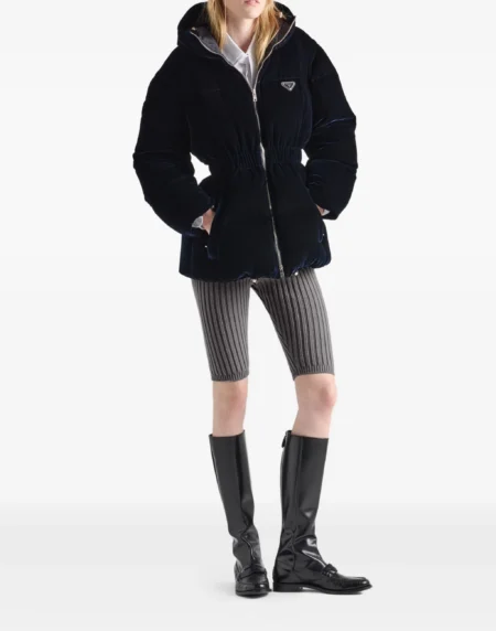 Prada velvet hooded puffer jacket