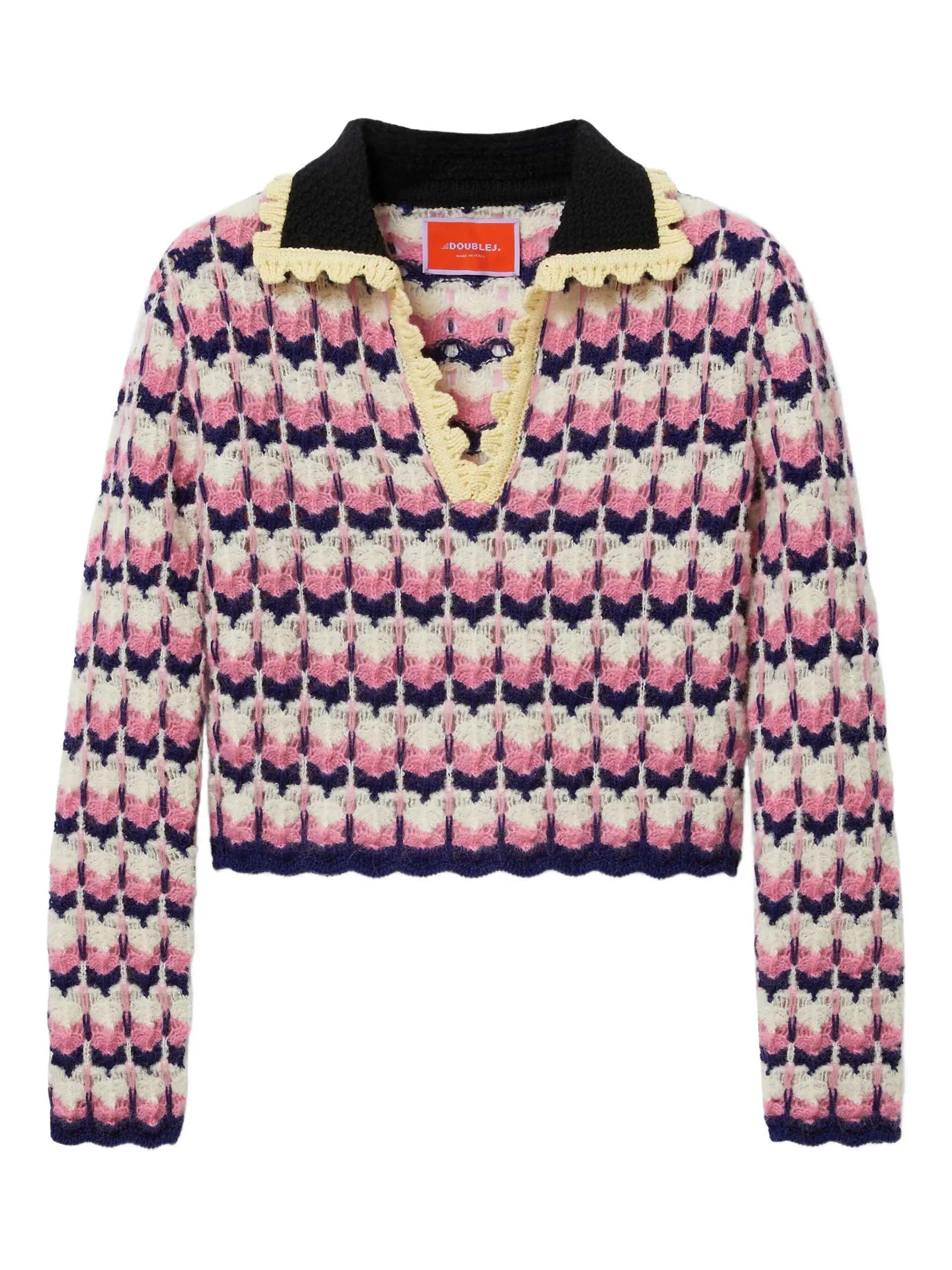 La DoubleJ crochet-trimmed geometric-pattern sweater