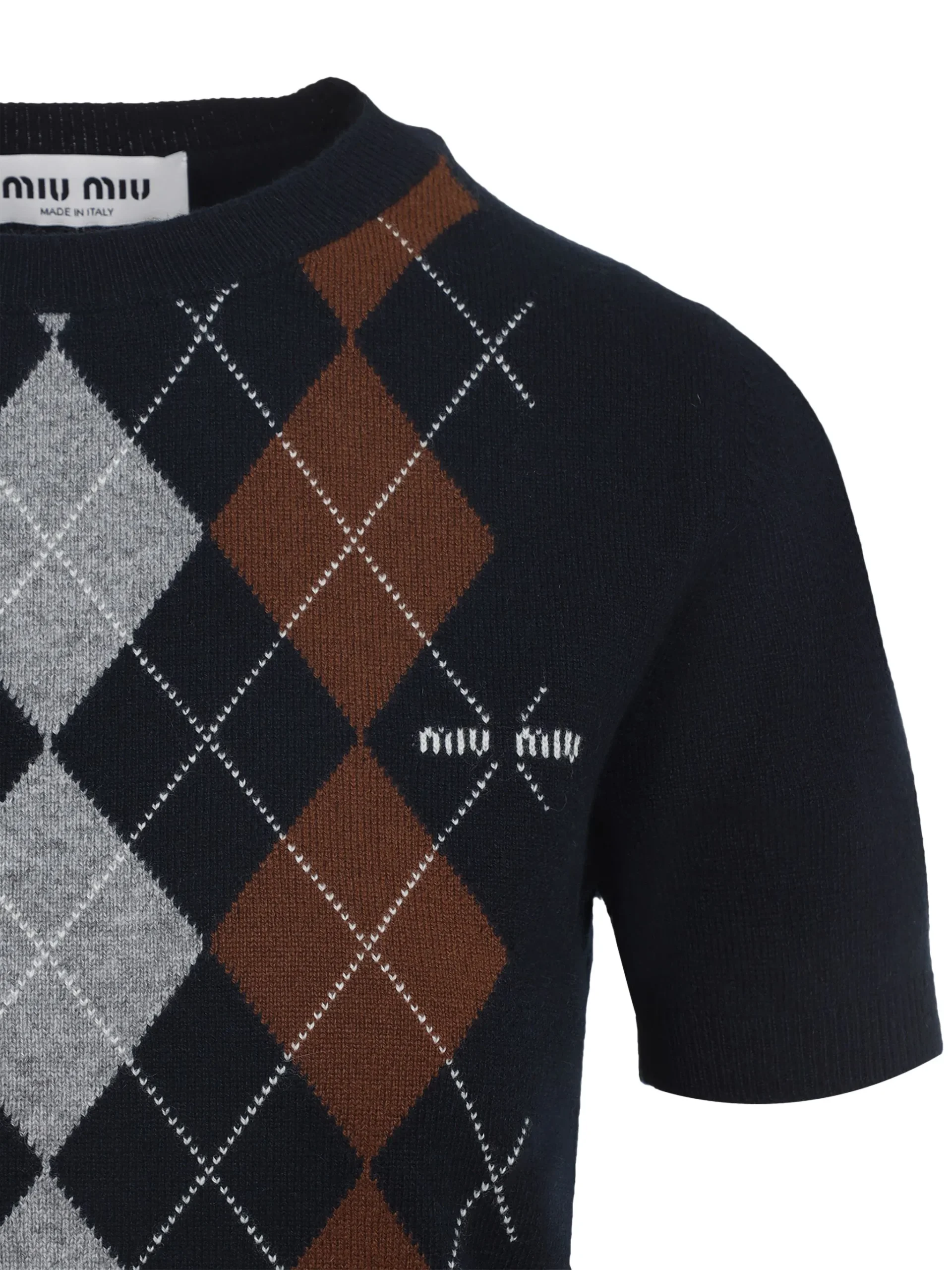 Miu Miu argyle-pattern short-sleeve top