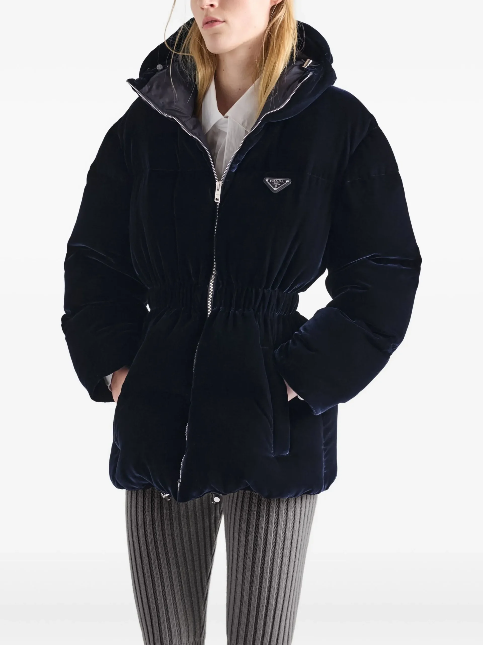 Prada velvet hooded puffer jacket
